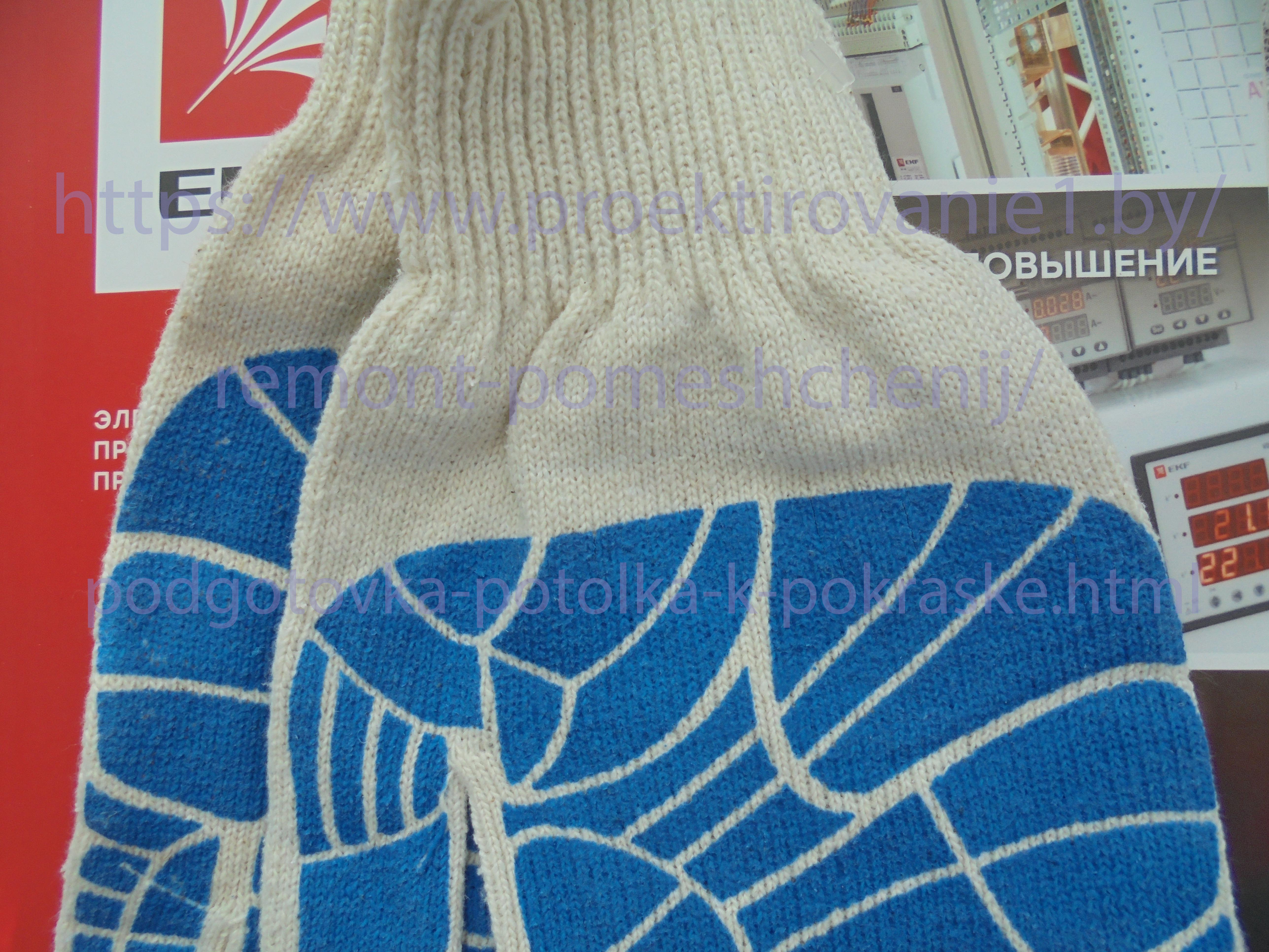 До снятия побелки поверхность бетонного потолка лучше намочить. Подойдет опрыскиватель небольшого объема. Делаю эту работу отдельными участками. Из распылителя разбрызгиваю воду на часть потолочной побелки ориентировочно до метра кв. Примерно на замачивание нужно потратить 300-500 мл. Надеваю перчатки х.б.